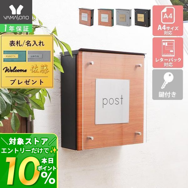 12/26はP+10%還元! ポスト おしゃれ 壁掛け 郵便ポスト 北欧 郵便受け 郵便 壁掛けポスト オシャレ メールボックス 新聞受け A4サイズ対応 クレイン ヤマソロ