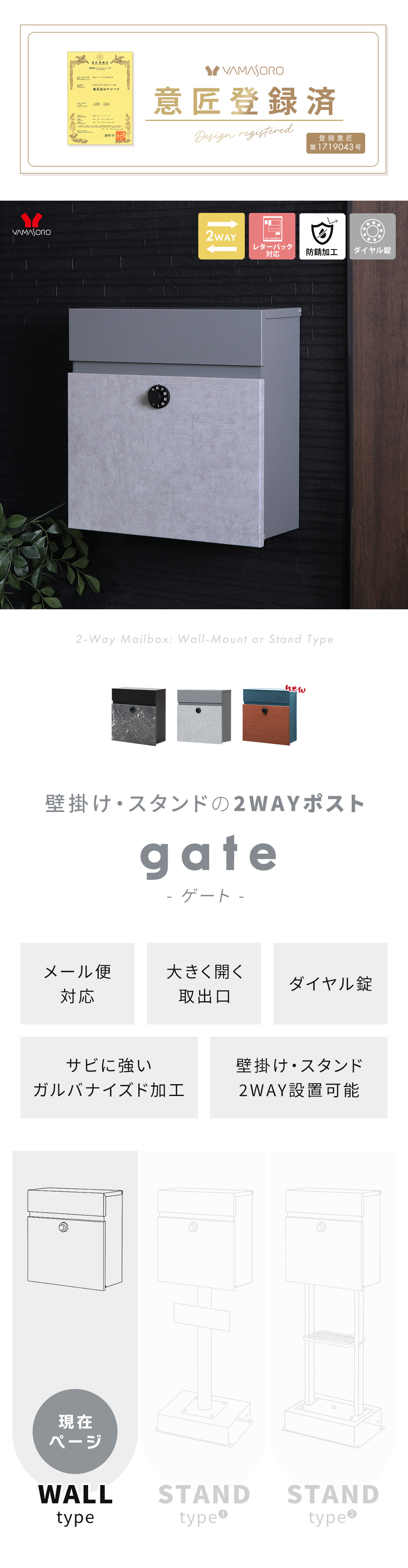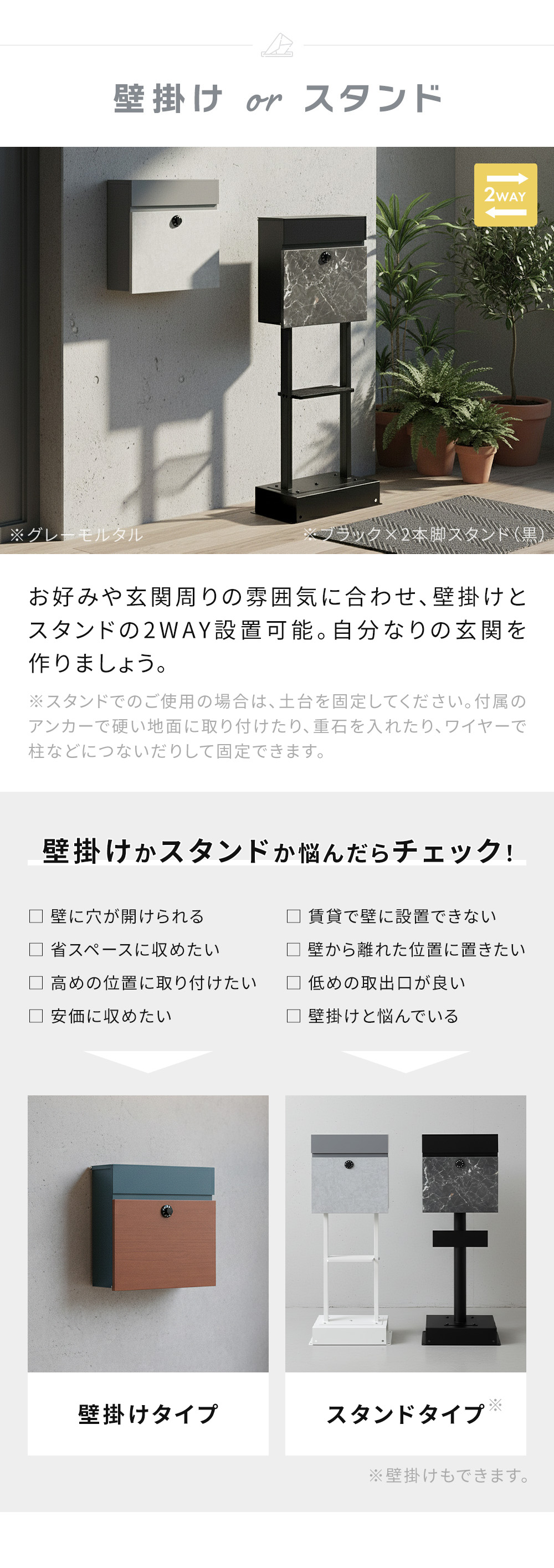 商品名壁掛け・スタンドの2WAYポスト 【gate (ゲート)】