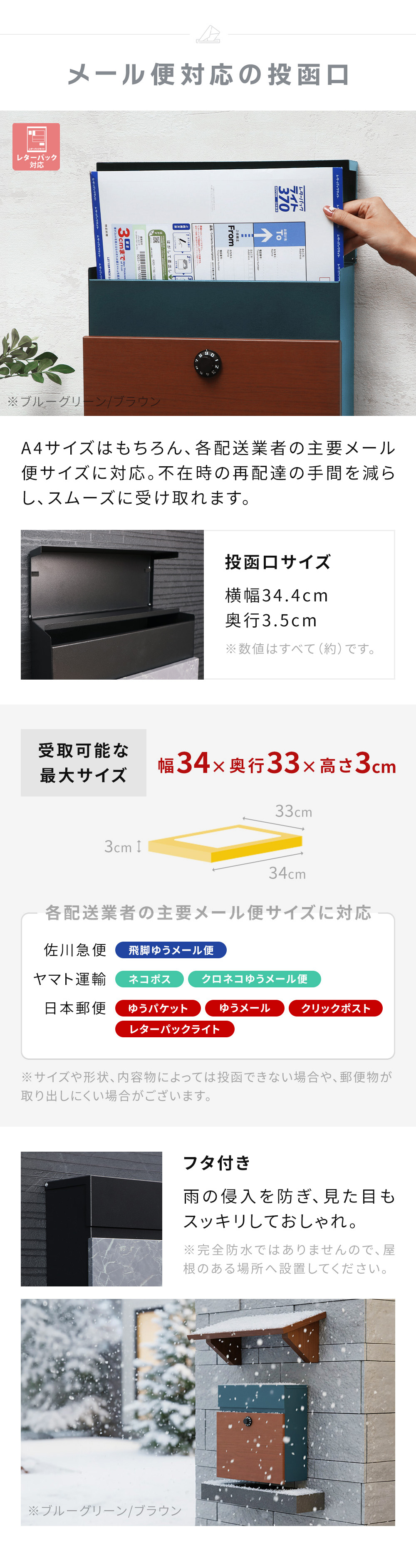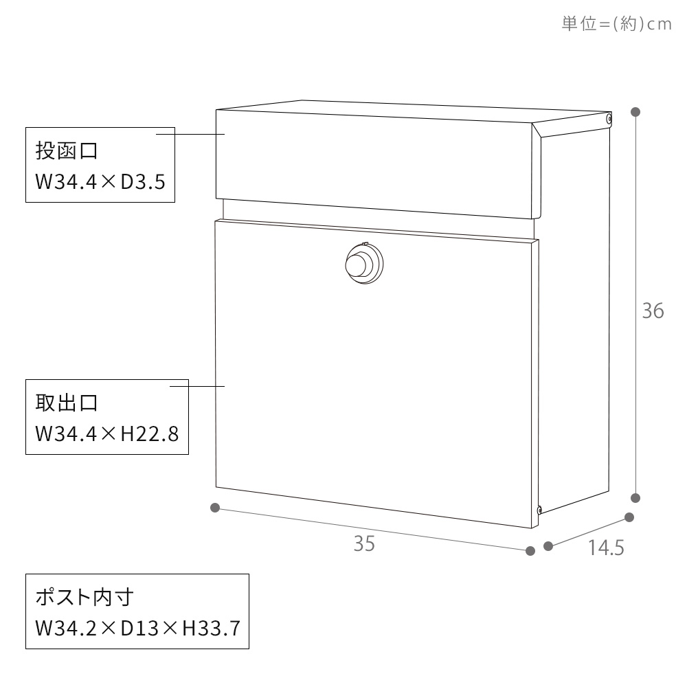 投函口:約 横幅34.4×奥行3.5cm