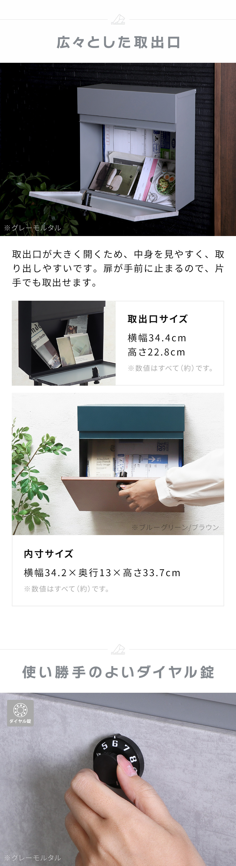 ポスト内寸:約 横幅34.2×奥行13×高さ33.7cm