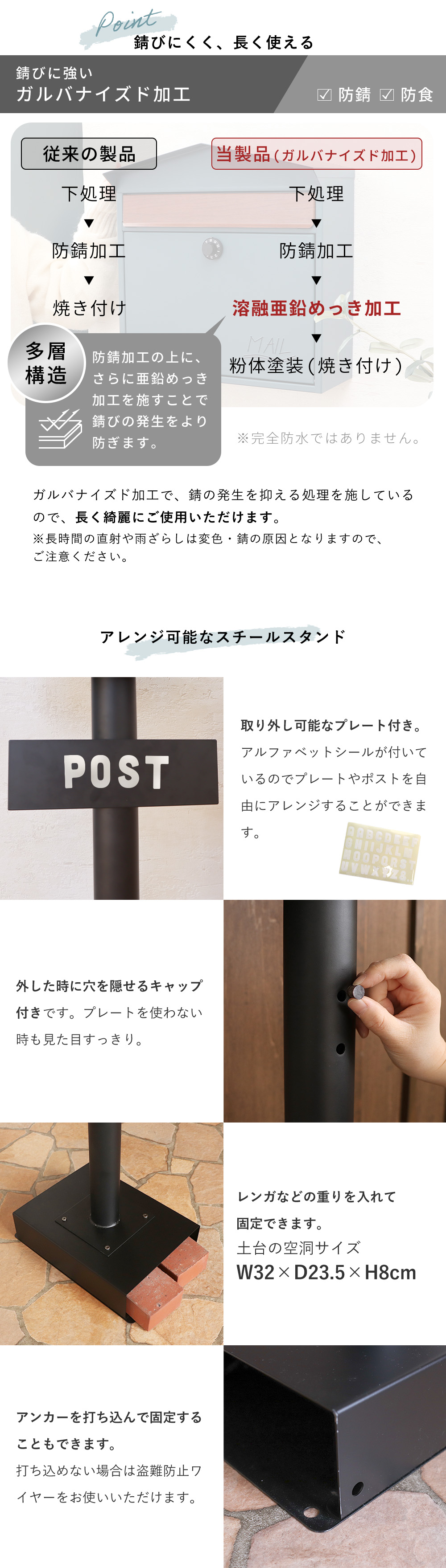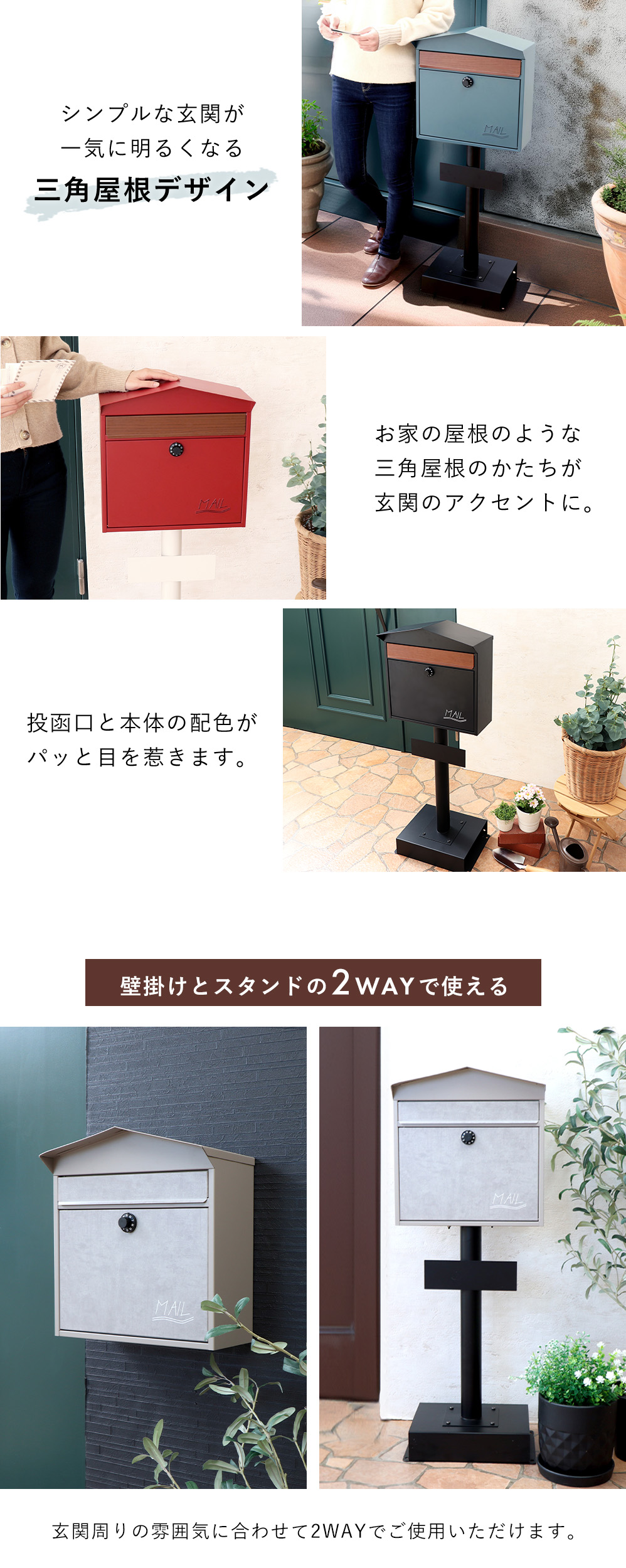 ※スタンドを外せば壁掛けポストとしても使える2WAY仕様です。ポストには壁掛けもご使用いただくための壁掛け用の穴が開いています。