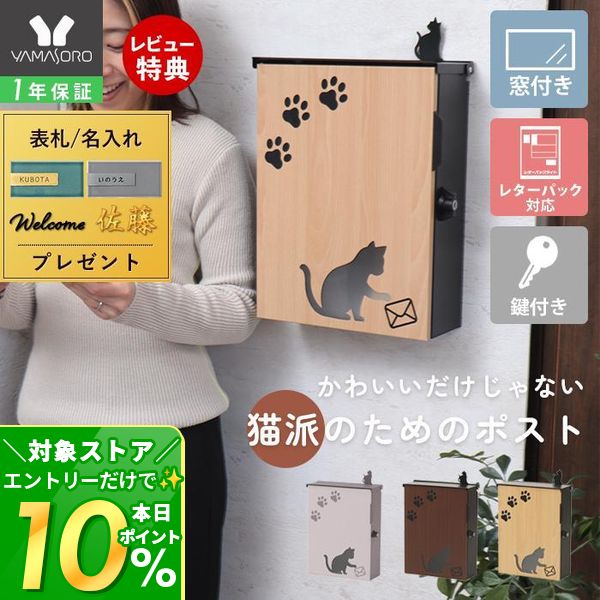 12/26はP+10%還元! ポスト 壁掛け スタンド対応 A4 猫 ねこ 郵便受け おしゃれ 郵便 北欧 鍵付き かわいい ミオレ メールボックス 新聞 miauler ヤマソロ
