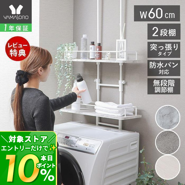 ランドリーラック 洗濯機 突っ張り 式 伸縮 スリム ロータイプ 上収納 おしゃれ 幅60 棚 段差 隙間 伸縮 防水パン エコー Echo ヤマソロ
