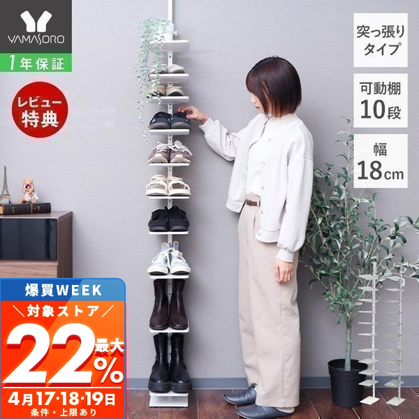 4/18はP最大22%! シューズラック 突っ張り 18幅 省スペース スリム 10段 棚 大容量 靴 壁面収納 大理石柄 モルタル柄 木目柄 玄関 エコー Echo ヤマソロ