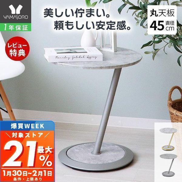 サイドテーブル 丸 天板 高さ52.5cm 飾り棚 大理石柄 おしゃれ モルタル ナイト ソファ 一時置き コンパクト Kulab クラブ 円形 ヤマソロ