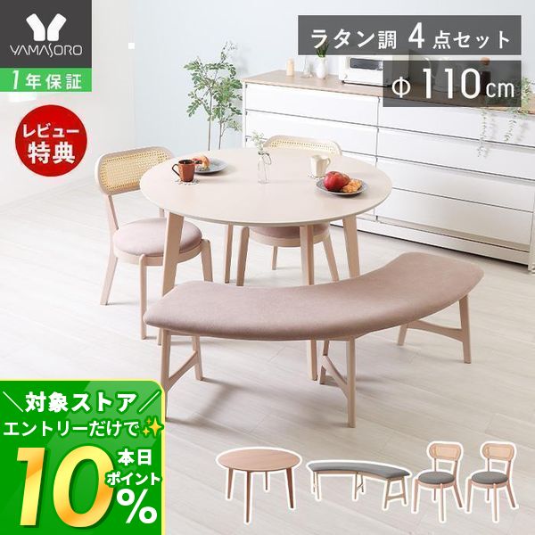 ダイニングテーブル ダイニングチェア 2脚 ダイニングベンチ ラウンドベンチ ラタン編み 木目 天然木 北欧 おしゃれ ナチュラル ホワイト