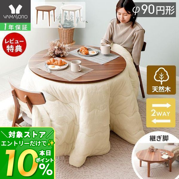 [10%クーポン10/15まで] ダイニング こたつ ハイタイプ 継脚 円形 丸 型 90cm おしゃれ テーブル 高さ調節 2人 用 継ぎ脚 木製 北欧 ブラウン シーラ ヤマソロ