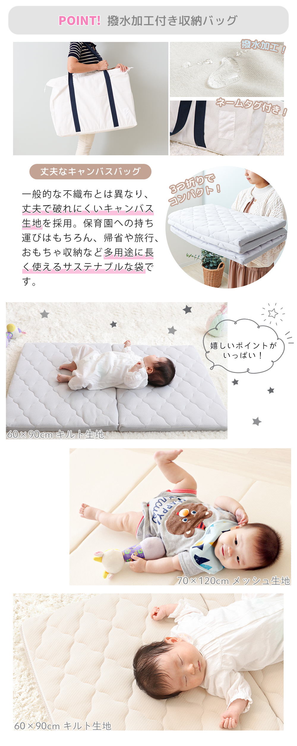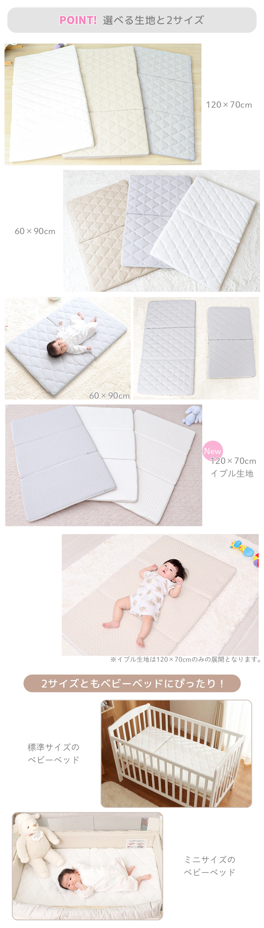 ベビーマット ベビーマットレス プレイマット 固綿 寝返り お昼寝マット 赤ちゃん マットレス 固め 3つ折り ベッドパッド ベビー 敷布団 洗える 保育園 冷感 接触冷感 リバーシブル イブル イブル生地 キルティング加工