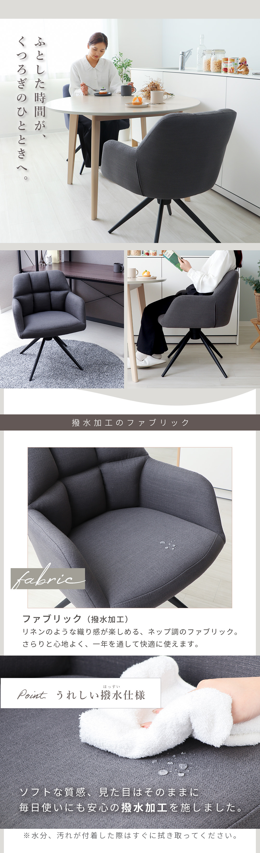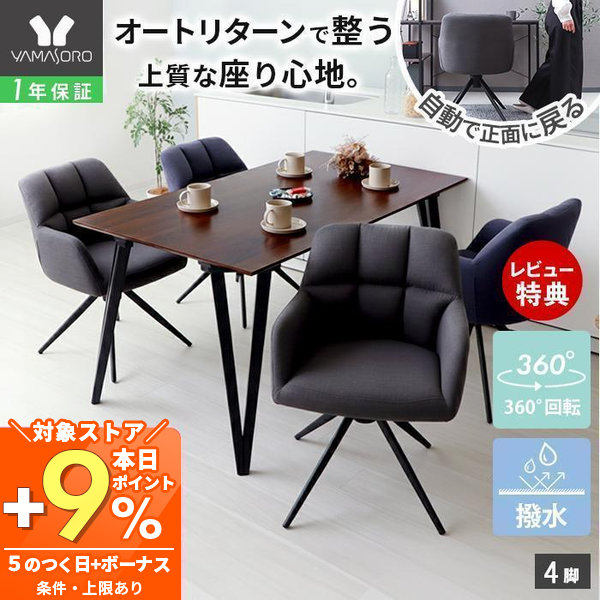 [10%クーポン1/14まで] ダイニングチェア 4脚 セット 回転 オートリターン 肘付 チェア 回転式 ファブリック 撥水 スチール 脚 椅子 ネージュ ピボ ヤマソロ