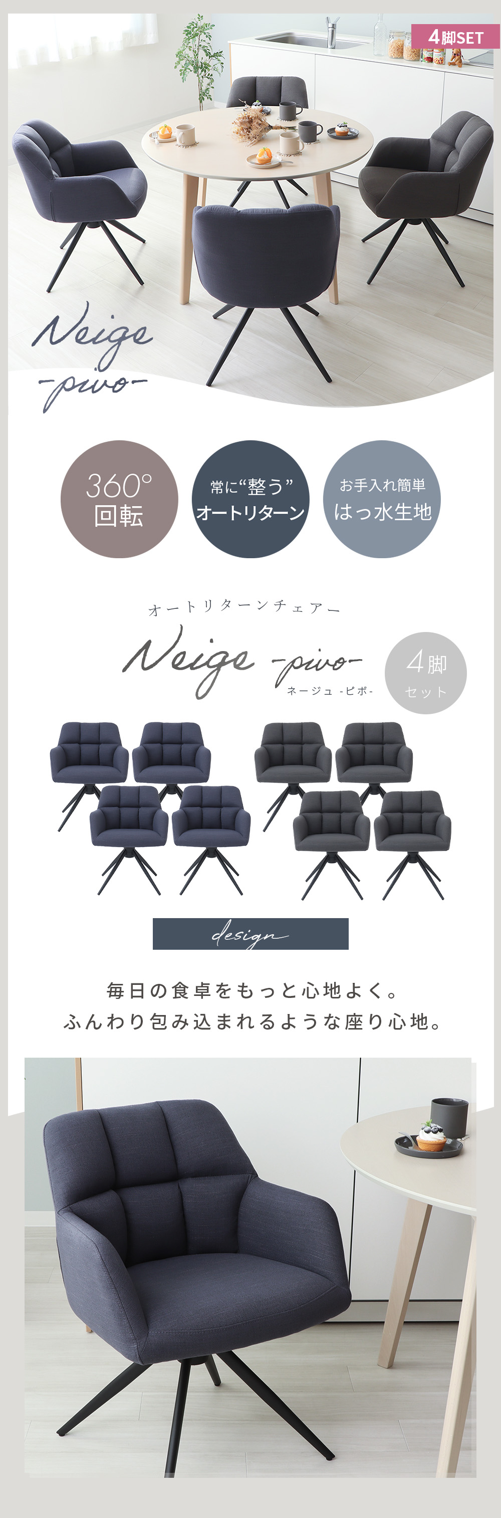商品名ダイニングチェア Neige-pivo- 4脚セット