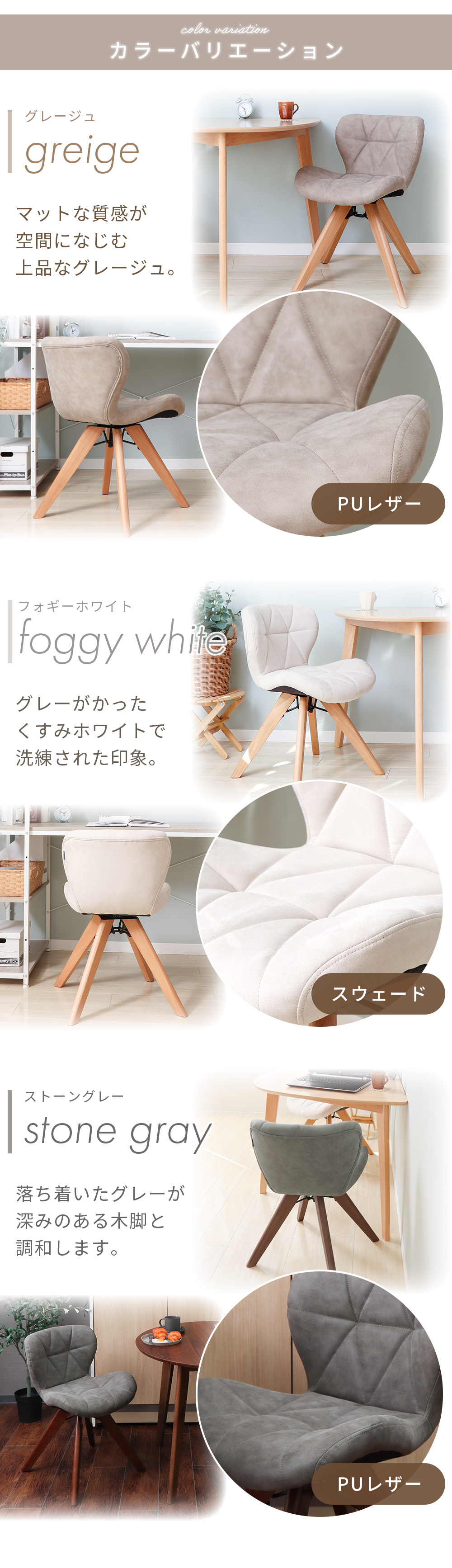 | 素材 | ・構造部材 合板、ウレタンフォーム、脚:ブナ(ビーチ)材、金属 ・張り材 PUレザー:合成皮革、スウェード:ポリエステル |