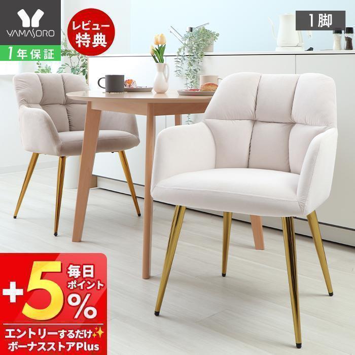 ダイニングチェア 肘付き 一人掛け クッション 疲れにくい ゴールド 脚 ベロア おしゃれ かわいい ネージュフレンチ