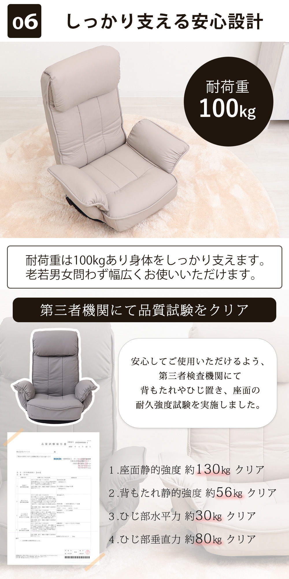 座面の高さは約21.5cm。こたつやローテーブルと合わせて使いやすく、オールシーズン快適に過ごせます。耐荷重100kg・耐久試験済みの安心設計で、長くお使いいただける丈夫なつくりです。