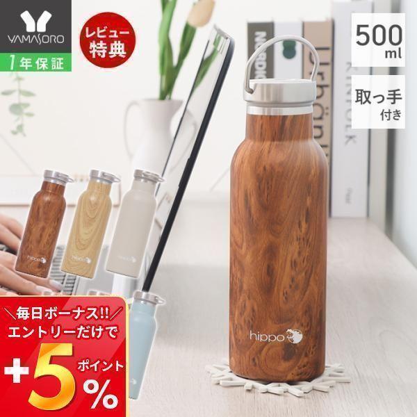 10/10はP+10%還元! 水筒 500ml 直飲み ステンレス ミルク缶型 ボトル おしゃれ 北欧 木目 調乳 真空断熱 保温 保冷 子供 18-8 BPAフリー カバ hippo ヤマソロ