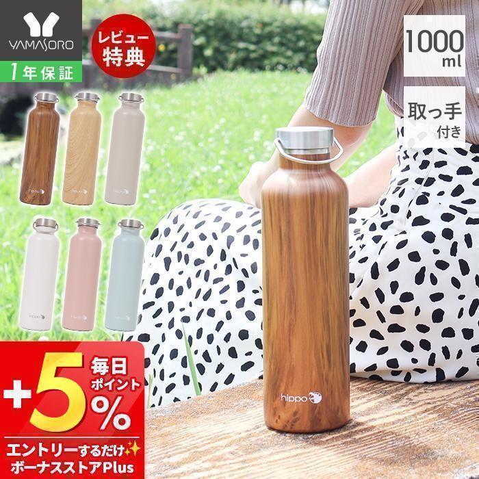 10/10はP+10%還元! 水筒 1000ml 直飲み ステンレス ミルク缶型 ボトル おしゃれ 大容量 北欧 木目 1L 真空断熱 保温 保冷 子供 18-8 BPAフリー hippo ヤマソロ