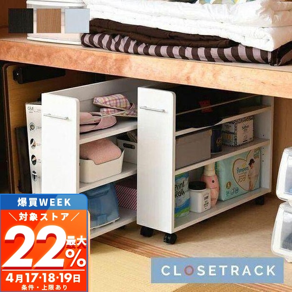キャスター付きの便利な押入れラック2個組。取っ手はどちらにも取り付け可能なので、収納箇所の向きは左右入れ替えできます。本やメディア類や、日用品のストックまで、押入れ内のスペースを有効活用するのでお部屋をすっきり片付けられます。
