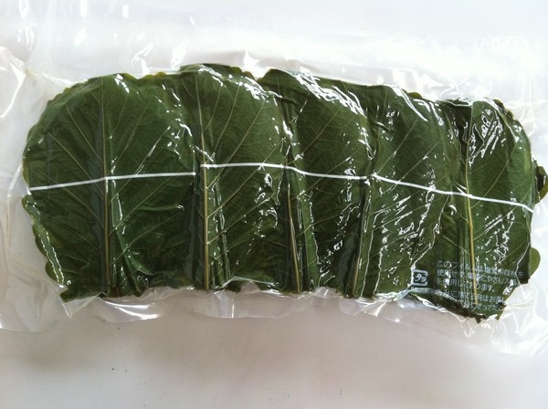 柏の葉をゆでてアクを抜き、真空パックにしてあります。