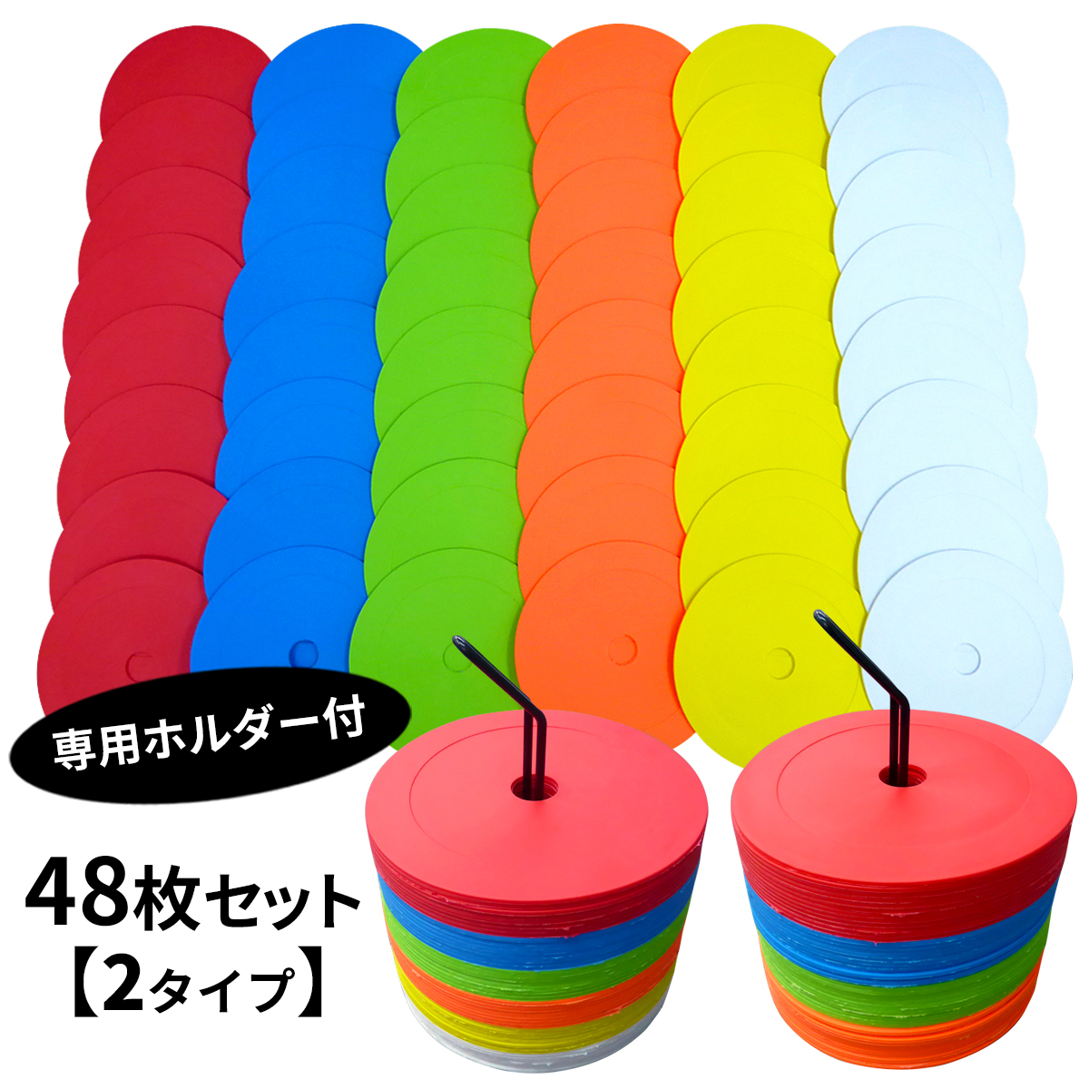 フラット マーカーコーン カラーコーン サッカー フットサル 陸上 トレーニング 48枚セット