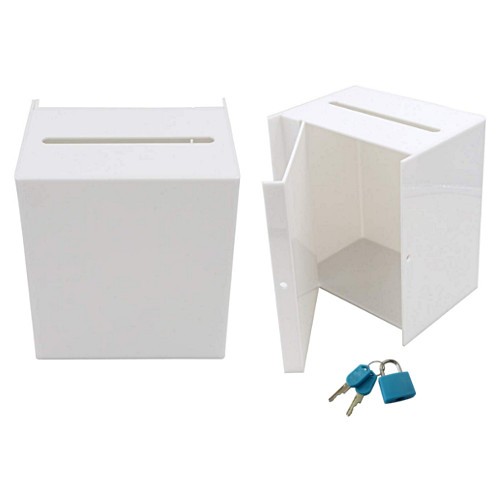 アクリル 鍵付き アンケートボックス/募金箱/貯金箱/チャリティーBOX/貴名受/アンケート回収 /W16cm ホワイト