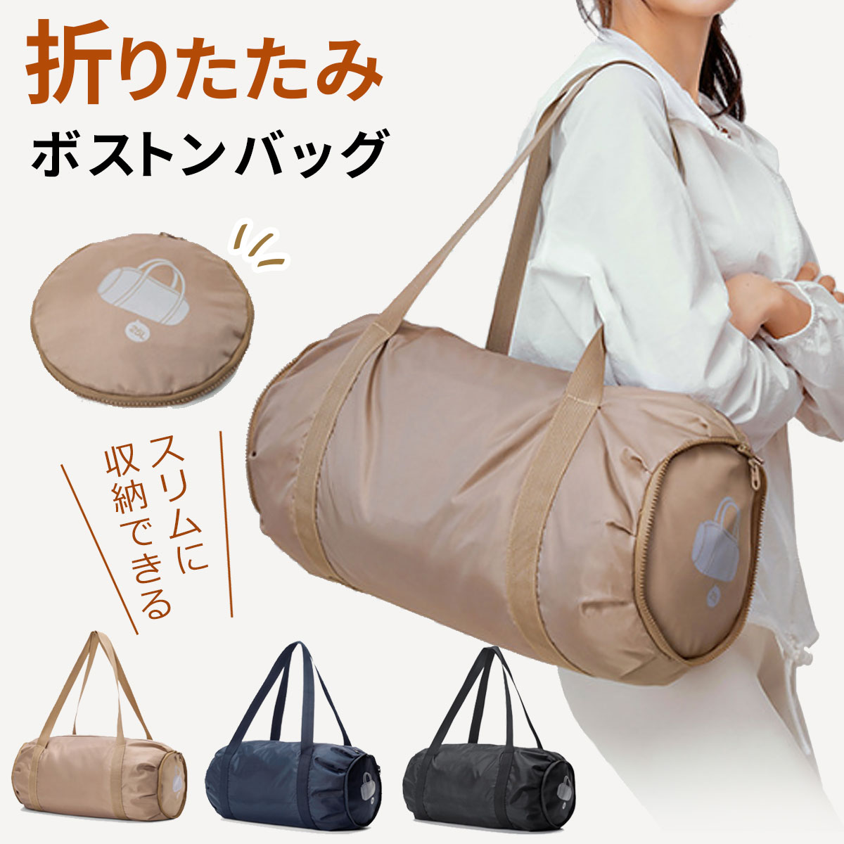 折りたたみ ダッフルバッグ ボストンバッグ トラベルバッグ 25L 軽量 大容量 撥水素材 サブバッグ 防水ポケット付 /メール便[ネコポス]発送