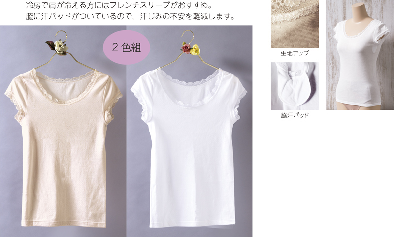 日本製ガーゼフレンチ袖インナー2色組
