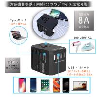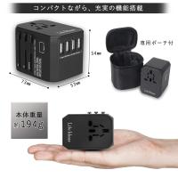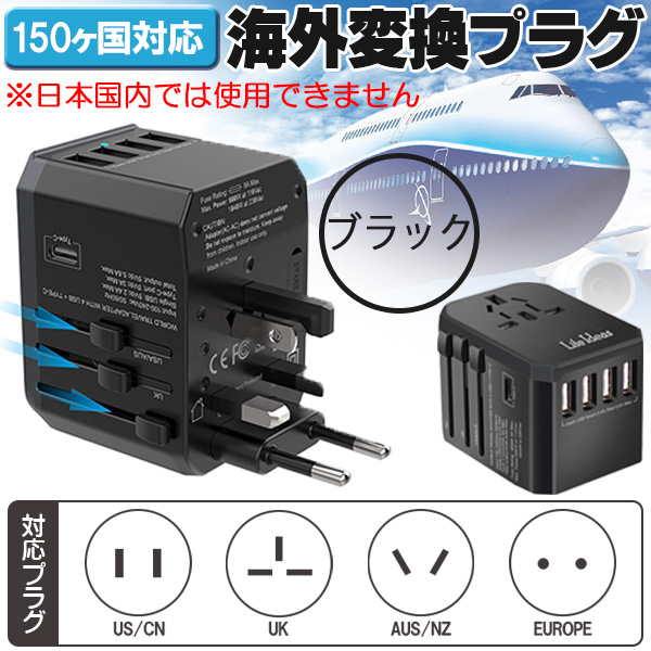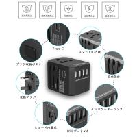 変換プラグ ブラック 150ヶ国対応 USB/4ポート USB(Type-C)/1ポート 急速充電 最大8A 1年保証