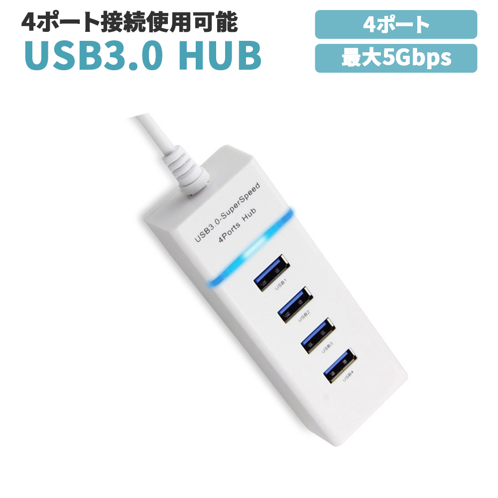 USBハブ ホワイト Type-A 4ポート USB3.0 データ転送 5Gbps インジケーターランプ付き 90日保証[M便 0/1]