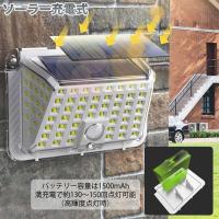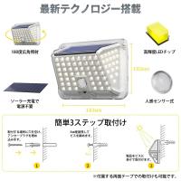 LED人感センサーライト 投光器 ソーラー充電 太陽光 90LED ホワイト 2個セット 1年保証