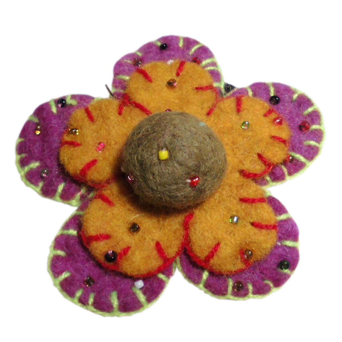 ヘアゴム アジアン雑貨 ネパール・羊毛フェルトお花のヘアゴム3 クリックポスト選択 送料200円