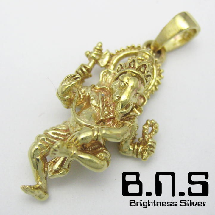 歓喜天、ゴールドガネーシャペンダント4 真鍮 ブラス (ヒンズー教 仏教 インド エスニック)【neck-1398-PB75】