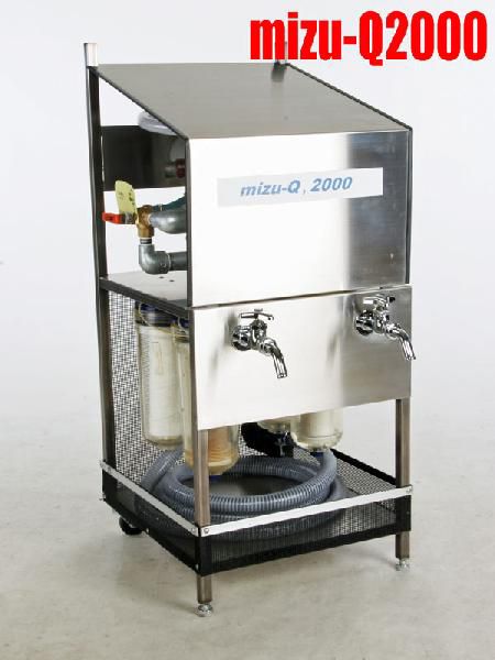 災害用浄水器 mizu-Q2000は、災害断水時の水確保にプール、河川、池、雨水などの貯蔵水を水源として手動式ポンプとエンジンポンプの2ウェイ方式でで汲み上げ、4筒式浄水システムにより水をろ過し、非常用の飲料水を確保することを目的とした災害用浄水器です。補助金制度有り。(各行政により異なります為、お住いの行政にご確認ください。)