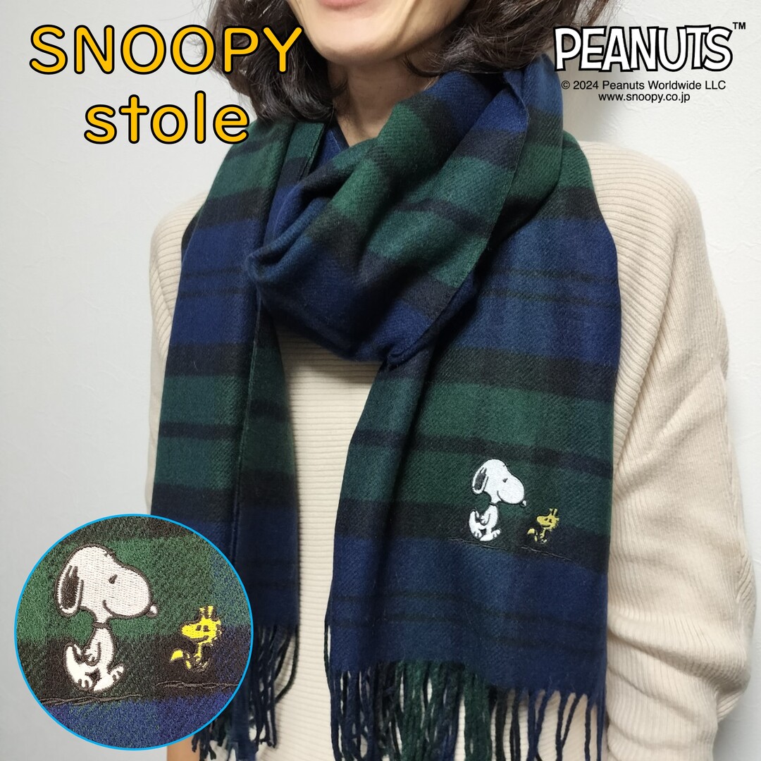 スヌーピー マフラー チェック ネイビー(紺) タータンチェック キャラクター グッズ