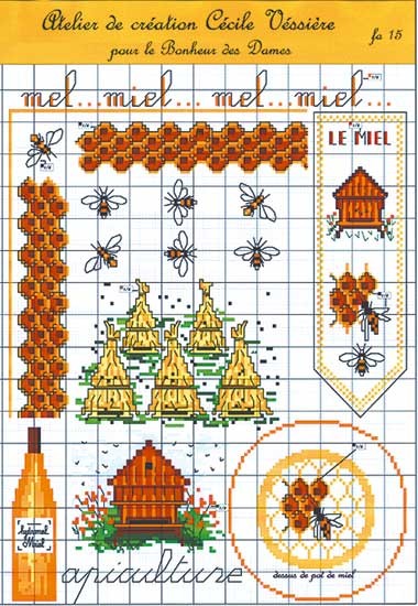 【ル・ボヌール・デ・ダム】 クロスステッチ 図案チャート FA15 Honey Leaflet