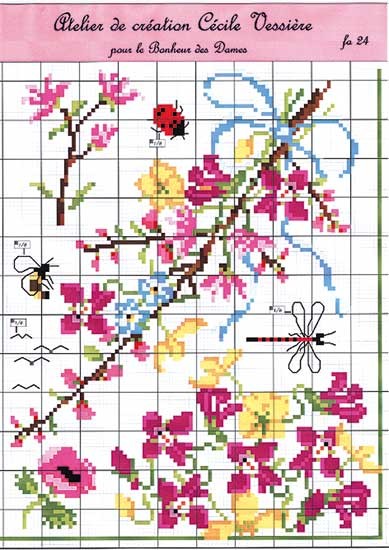 【ル・ボヌール・デ・ダム】 クロスステッチ 図案チャート FA24 Flower Leaflet