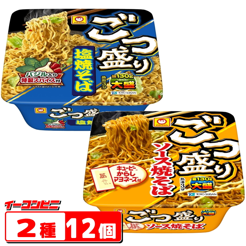 【2種】マルちゃん ごつ盛り 焼きそば 2種各6個セット (計12個) ソース焼そば/塩焼そば 大盛り カップやきそば アソート 詰め合わせ