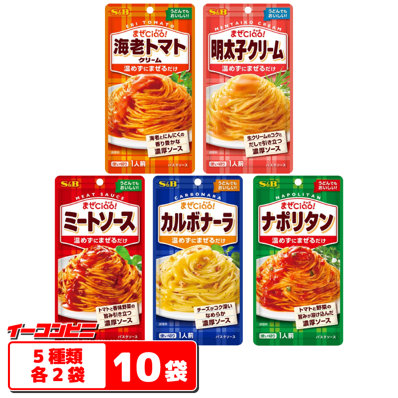 エスビー まぜCiao! パスタソース 70g 5種各2袋セット(計10袋) 【ミートソース/カルボナーラ/ナポリタン/海老トマト/明太子】メール便 ゆうパケット3