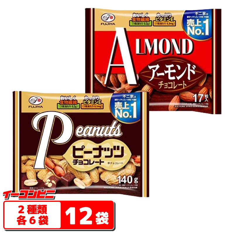 不二家 ピーナッツチョコ/アーモンドチョコ 大袋 2種各6袋セット(計12袋) ファミリーサイズ ナッツチョコレート
