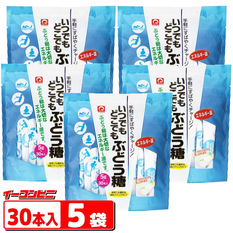 パールエース いつでもどこでもぶどう糖 (5gx30本入) 5袋セット (計150本分)「無水結晶ぶどう糖」100% スティック