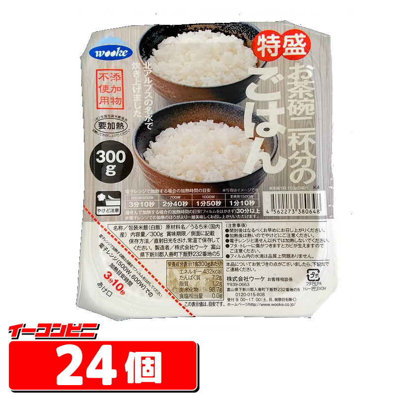 ウーケ ふんわりごはん 特盛り 国内産100% 300g×24個 (3個パックx8) レトルト パックごはん