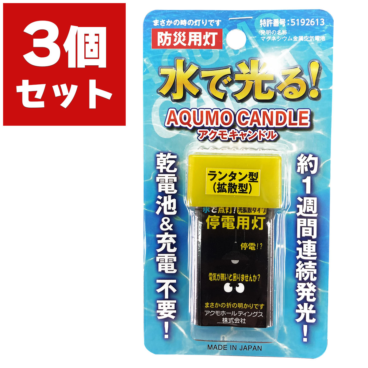 ろうそく 防災ライト アクモキャンドル 拡散タイプ ×3個 アクモホールディングス 防災用灯 LED 電池式 ローソク LEDローソク LEDライト 災害 アウトドア M