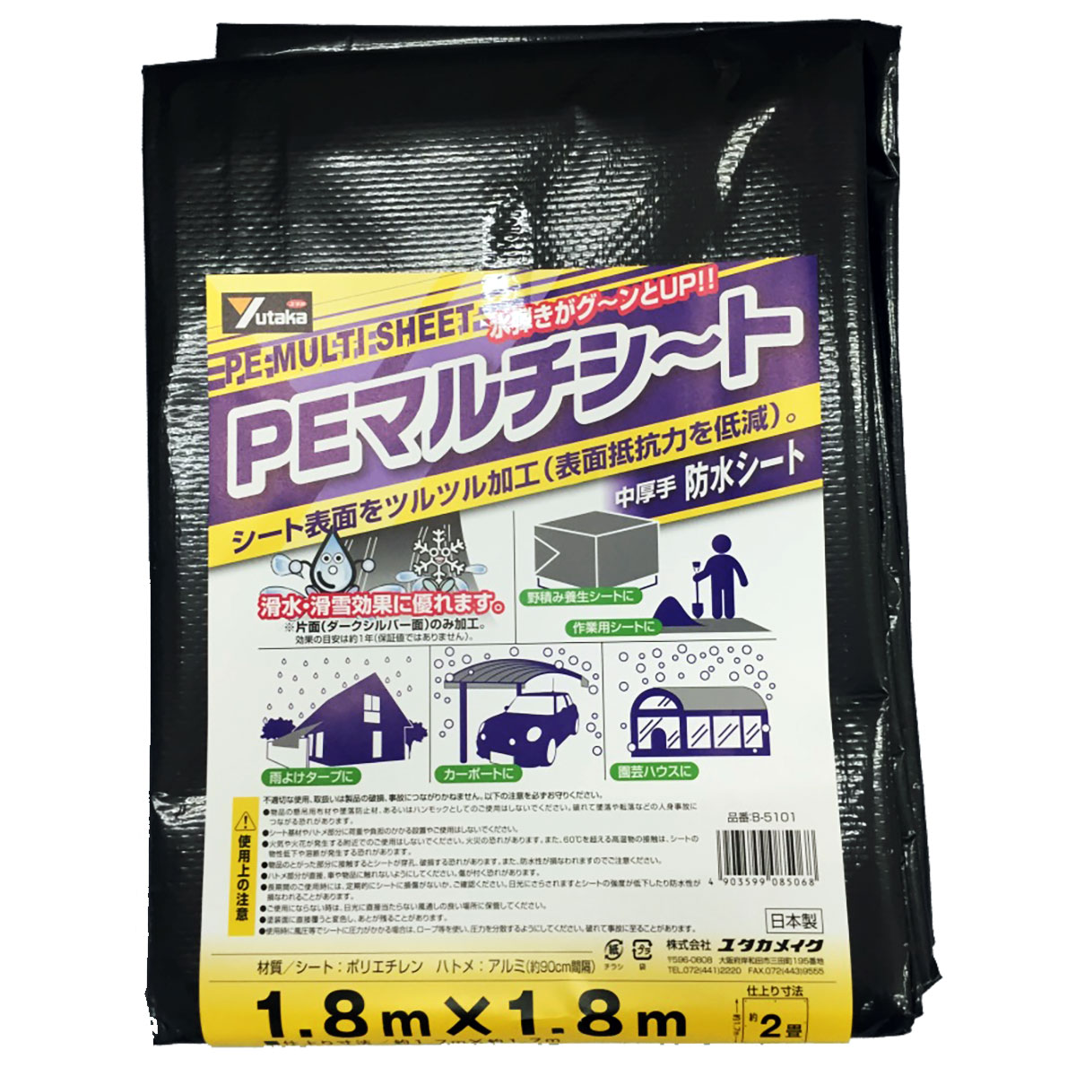 防水シート PEマルチシート ダークシルバー (裏 ブルー) 中厚手 1.8m×1.8m B-5101 ユタカメイク ブルーシート 防水 シルバーシート カラーシート