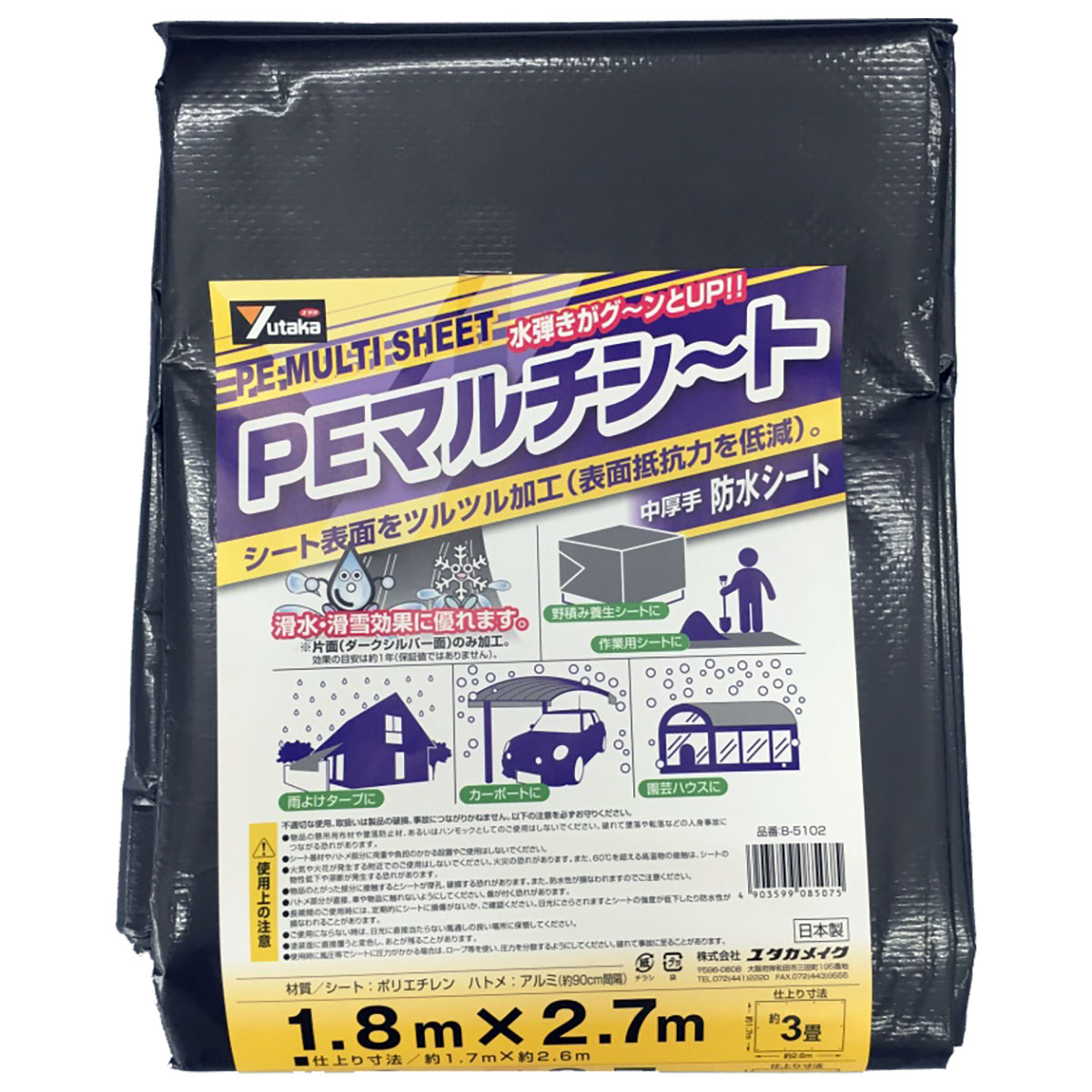 防水シート PEマルチシート ダークシルバー (裏 ブルー) 中厚手 1.8m×2.7m B-5102 ユタカメイク ブルーシート 防水 シルバーシート カラーシート