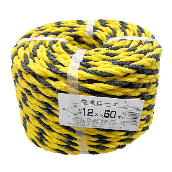 ロープ PE 標識ロープ 軽量タイプ #12×50m Y12#-50 ユタカメイク ロープ 荷造り紐 カラーロープ 梱包紐 紐 トラロープ PEロープ ポリエチレン 標識