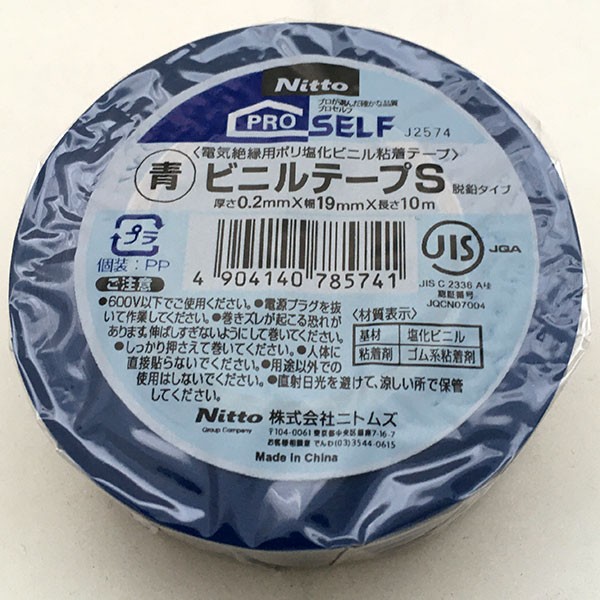 ビニールテープ プロセルフ ビニルテープS 青 脱鉛タイプ 厚さ0.2mm×幅19mm×長さ10m J2574 ニトムズ テープ 絶縁テープ 粘着テープ 補修テープ M12