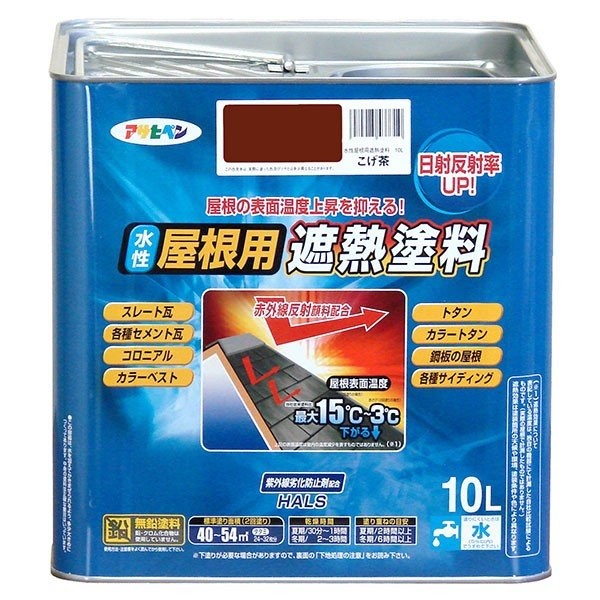 遮熱塗料 水性屋根用遮熱塗料 10L こげ茶 アサヒペン 水性塗料 塗料 ペンキ 水性 屋根塗料 水性ペンキ トタン屋根用塗料 外壁塗料 塗装