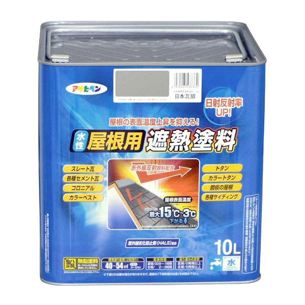 遮熱塗料 水性屋根用遮熱塗料 10L 日本瓦銀 アサヒペン 水性塗料 塗料 ペンキ 水性 屋根塗料 水性ペンキ トタン屋根用塗料 外壁塗料 塗装