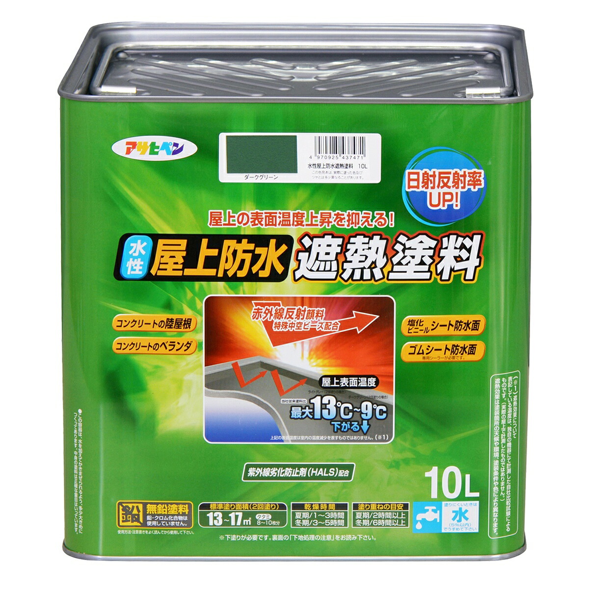 防水塗料 水性屋上防水遮熱塗料 10L ダークグリーン アサヒペン 水性塗料 遮熱塗料 塗料 ペンキ 水性 水性ペンキ 屋根塗料 紫外線 劣化防止 塗装