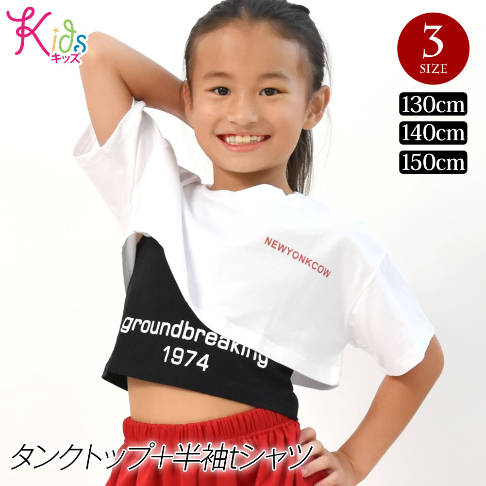 キッズ 半袖 tシャツ+タンクトップ トップス 2点セット ショート丈 ヒップホップ HIPHOP ダンス 子供服 子ども キッズ ジュニア W34DF48 [M便 1/2]