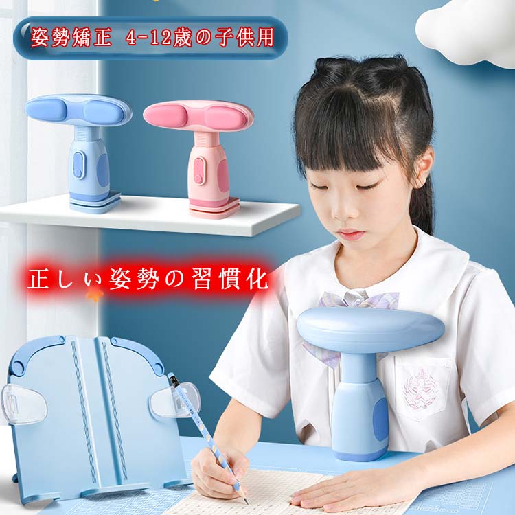 子供用 姿勢矯正器 高さ調整可能 柔らかい クッション付き コンパクト 簡単設置 猫背予防 視力保護 近視予防 宿題 勉強 キッズ ブルー ピンク