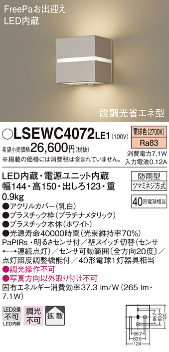 【法人様限定】パナソニック LSEWC4072LE1 LEDポーチライト 防雨型 センサ付 電球色